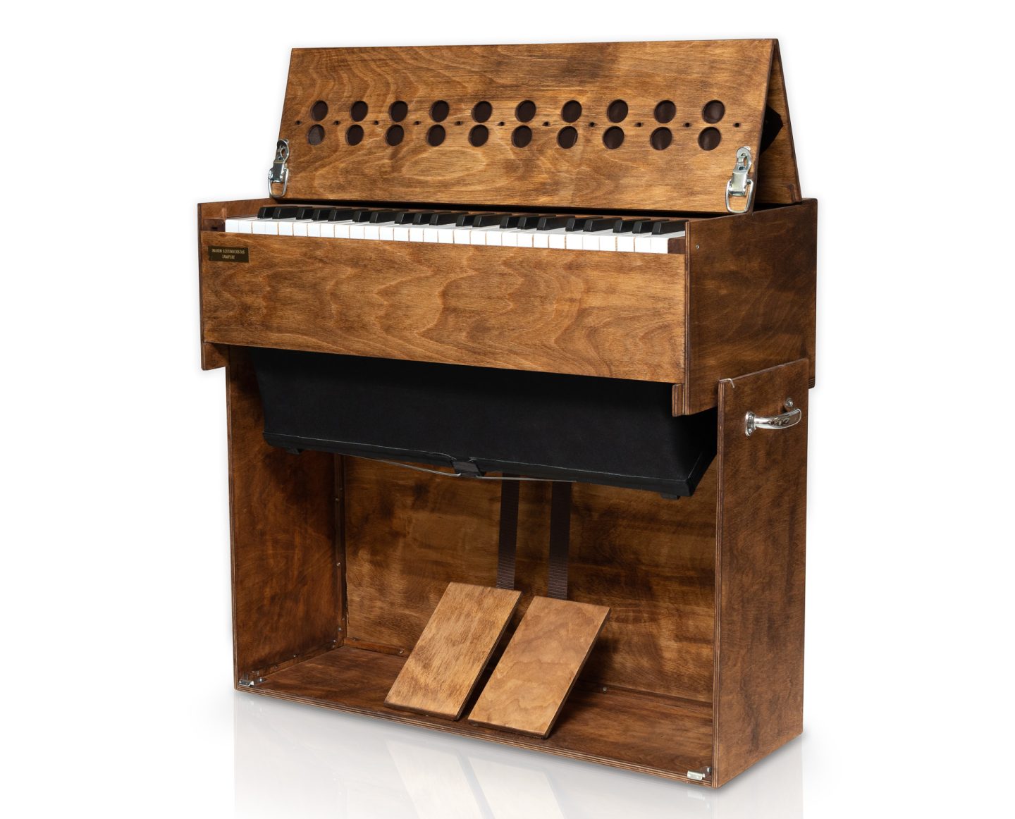 My main products are folding organs, both new and recycled ones. I offer repair and tuning services for reed organs in every size. I also make weird free-reed-based musical instruments.